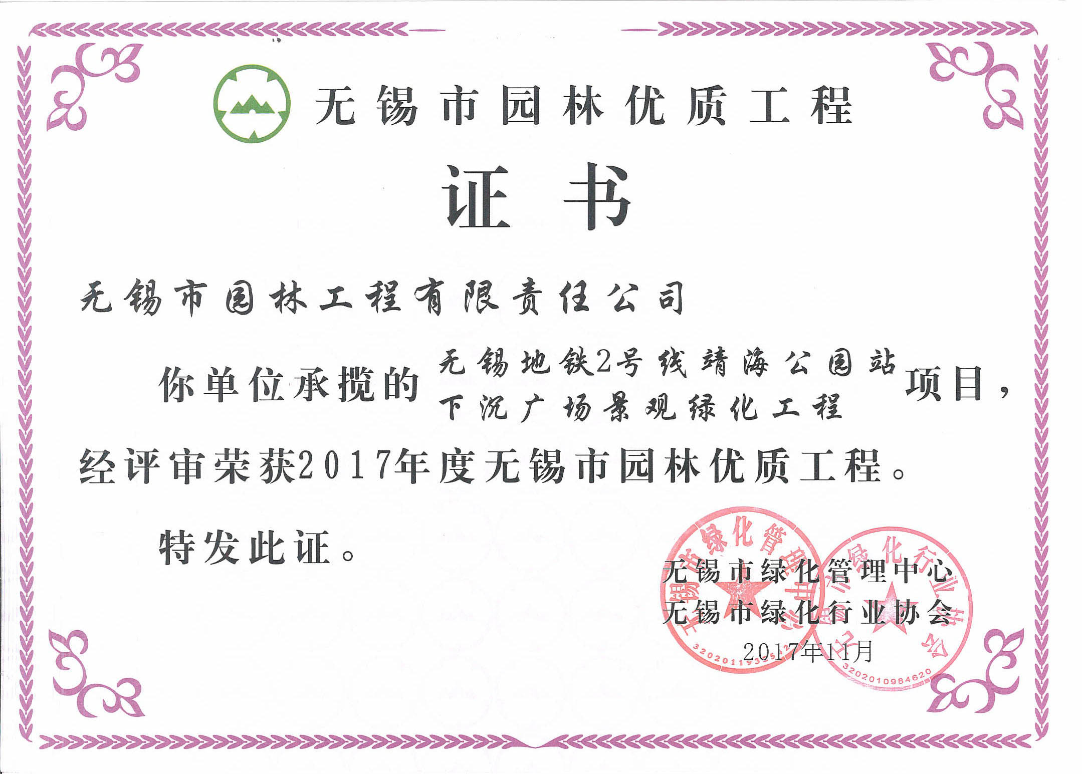 2018揚(yáng)子杯——無錫地鐵2號(hào)線靖海公園站下沉廣場(chǎng)景觀綠化工程