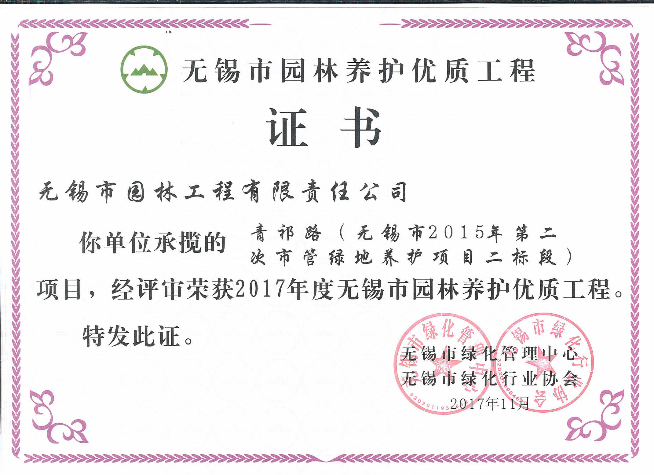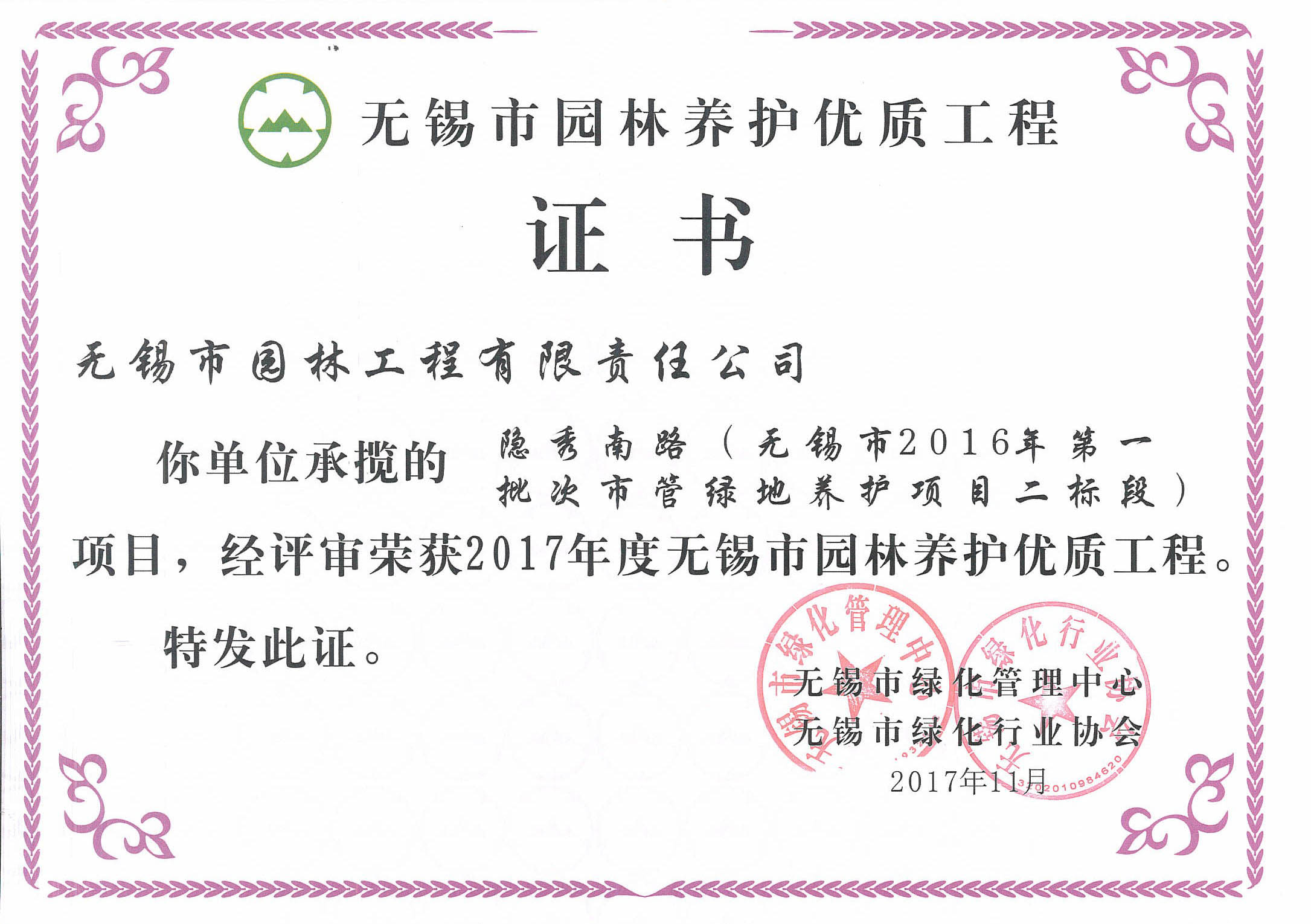 2016揚(yáng)子杯——無錫地鐵1號(hào)線沿線景觀綠化工程三標(biāo)