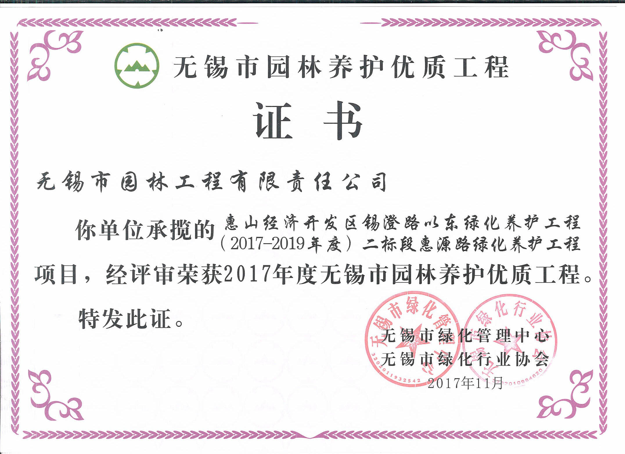 2017年度無錫市太湖杯優(yōu)質(zhì)工程